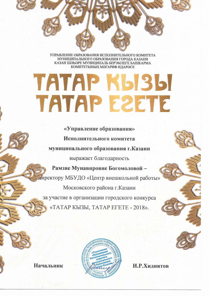 - Участие в организации проведении городского конкурс "Татар кызы, Татар егете" Благодарность