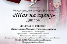 Поздравляем наших талантливых исполнительниц Марсутдинову Марьям и Галимову Аделину с прекрасным результатом на Международном конкурсе-фестивале «Шаг на сцену»!Их творческий дуэт заслуженно стал Лауреатом III степени!Отдельные слова благодарности нашим уважаемым преподавателям Кавайкиной Р.А. и Мингазетдиновой З.А., а также концертмейстерам Камалову И.И. и Низамутдинову А.Р. за безупречное музыкальное сопровождение.Так держать! Мы вами гордимся! -