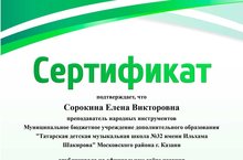 23-24 января 2021 года в Казани состоялся Международный конкурс искусств «Симфония талантов». Ученица нашей школы Камалова Зухра, преподаватель Гараева Ильмира Расиховна, стала Лауреатом 2 степени!