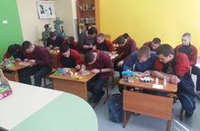 Воспитанники РСОШ заранее готовились к встрече, сделали заготовки из фанеры, нанесли узоры, чтобы показать основы росписи. Свои умения и навыки ребята щедро передавали воспитанниками СУВУ ЗТ «Раифа»: работали в паре, помогали с подбором цвета, соответствующего городецкой росписи. Время пролетело незаметно, работы получились очень красочные. В каждую из них была вложена часть «детской» души, вероятно, поэтому от них веяно теплом и радостью.