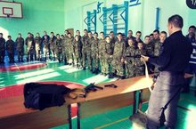 Ребята с удовольствием принимают участие в таких станциях как : интеллектуальная викторина, стрельба по мешеням, разборка и сборка автомата, прохождение полосы припятствие с метанием гранат, топографическая станция и обед на полевой кухне с горячей гречневой кашей с тушенкой.