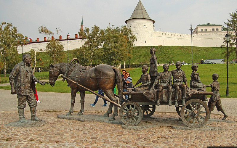 Благотворительно- стью в нашей республи- ке занимаются многие – предприятия, акционер- ные объединения, отдель- ные граждане. Ярким примером этому может служить жизнь, деятельность Галимзянова Асгата Галимзяновича, девиз которого «Я живу, чтобы делать добро».Гуляя под белокаменными стенами Казанского крем- ля, разве что ленивый турист не залезет сфотографироваться на бронзовую телегу, в которую набилась орава ребятишек. Запечатлевшись же рядом со скульптурой, начинают гадать, что за старик ведет под узды лошадь. Таблички-то нигде нет.