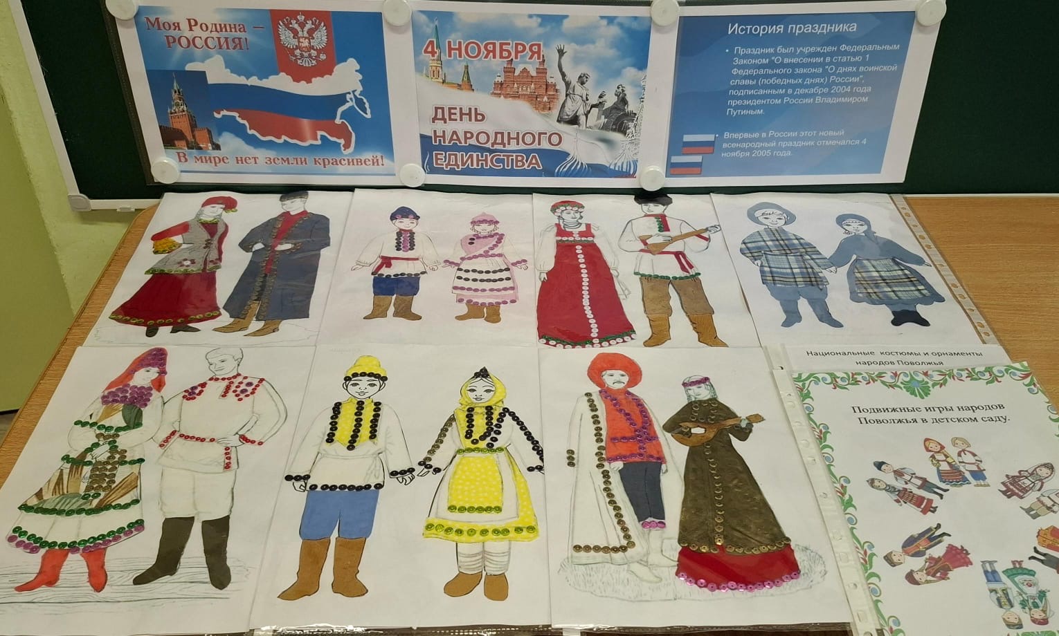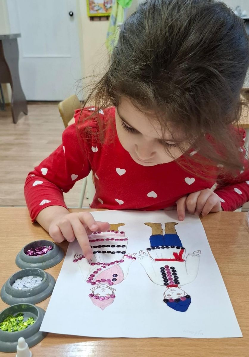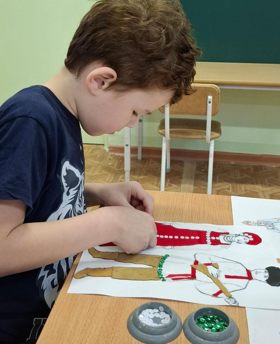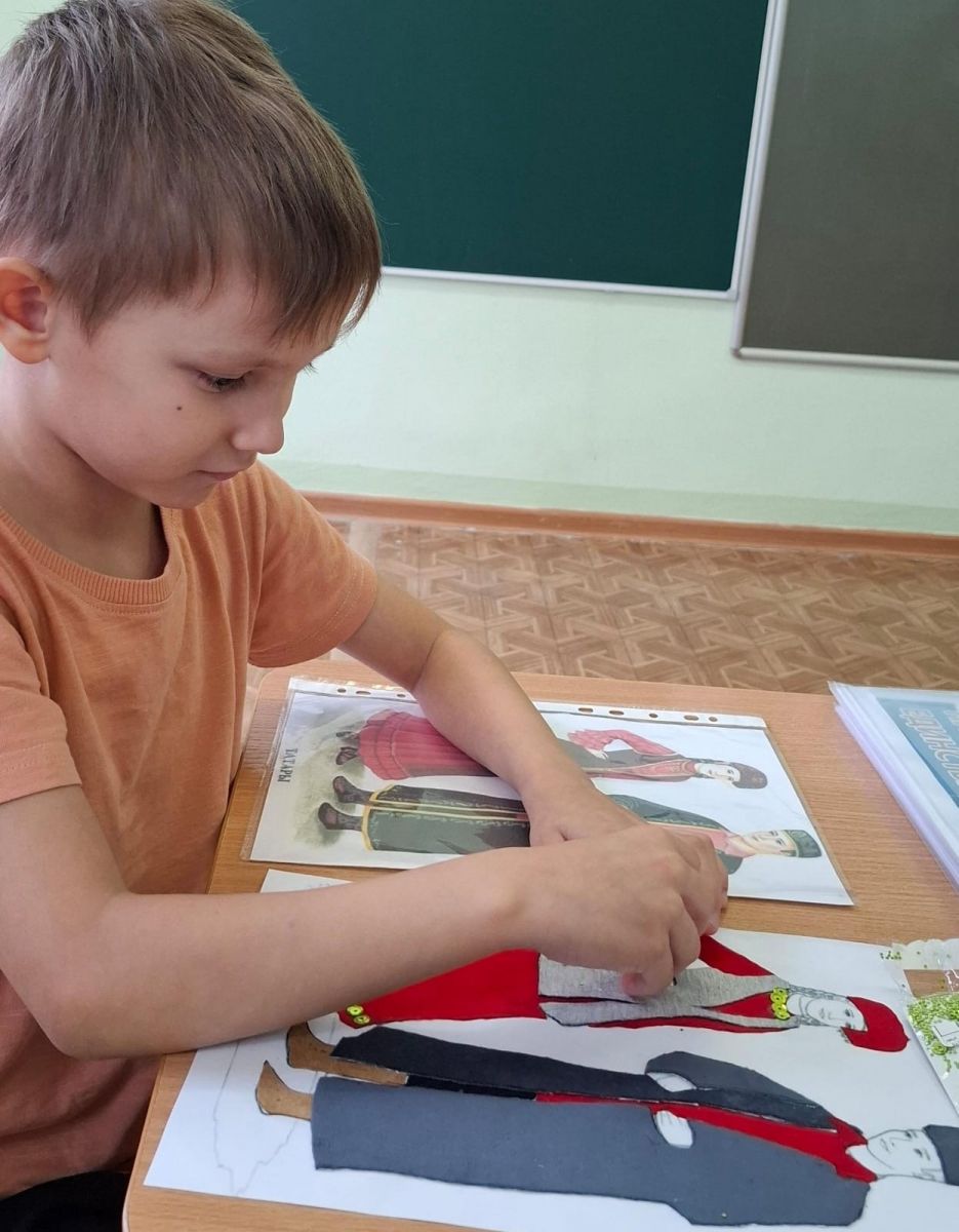 4 ноября – особенный день, когда мы вспоминаем о нашей общей силе, о сплоченности и многообразии нашей великой страны. В 6 группе (ЗПР) неделя была посвящена теме "В единстве народа – сила России", и каждый день был наполнен яркими событиями, позволяющими детям глубже понять и почувствовать дух народного единства. 1. Беседа: "Мы – вместе!", 2. Просмотр иллюстраций: "Картины наших предков", 3. Презентация: "Мозаика народов России", 4. Рассматривание и обсуждение кукол в народных костюмах Поволжья: "Ожившие истории", 5. Индивидуальная работа с детьми: "Эскизы будущего", 6. Творческая работа с детьми: "Мастерская народных узоров", 7. Изготовление по трафаретам, костюмов из ткани, замши и кожи: "Ткань оживает", 8. Приклеивание элементов народностей из ткани и кожи: "Лоскутная мозаика души", 9. Украшение пайетками костюмов: "Сияние праздника", 10. Украшение костюмов лентами, тесьмой и т.п.: "Финальные штрихи красоты", 11. Индивидуальная работа: "Ожившие лица народных героев" (фломастерами). Вся эта неделя стала настоящим путешествием в мир народной культуры, где дети познали красоту многообразия, ценность дружбы и силу единства, которое делает нашу Россию великой!