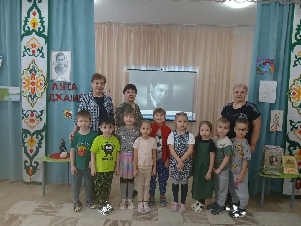В нашем детском саду завершилась тематическая неделя, посвященная памяти замечательного поэта - Мусы Джалиля. Уже совсем скоро мы будем отмечать его 120-летие! Наши воспитанники активно погрузились в творчество легендарного автора: вместе с воспитателями ребята узнали много интересного из жизни поэта, познакомились с его известными стихами и даже попробовали себя в роли художников, нарисовав иллюстрации к любимым произведениям .Для педагогов также было организовано увлекательное мероприятие викторина «Жизнь и творчество Мусы Джалиля», где участники проверили свою эрудицию и знания о творчестве Джалиля. А вот родители смогли познакомиться с материалами на специальных информационных стендах, размещенных в группах детского сада. Завершилась наша неделя познавательным часом «Муса Джалиль в наших сердцах». Здесь малыши услышали историю от дочери поэта -Чулпан Мусиевны Джалиловой, прочитали вслух любимые стихотворения и посмотрели замечательные мультфильмы, созданные по мотивам произведений Джалиля. Надеемся, что эта насыщенная неделя оставила незабываемые впечатления у всех участников!