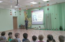Детям прочитали произведения Евгения Ивановича, ознакомили с иллюстрациями книг. В музыкальном зале во время тематической беседы с помощью презентации воспитатель Мария Валерьевна Бородина обобщила и закрепила знания детей о Чарушине. Дети ознакомилились выставкой из книг "Вольные птицы", "Разные звери", "Щур", "Медвежата", "Волчишко", "Еж" и т.д.