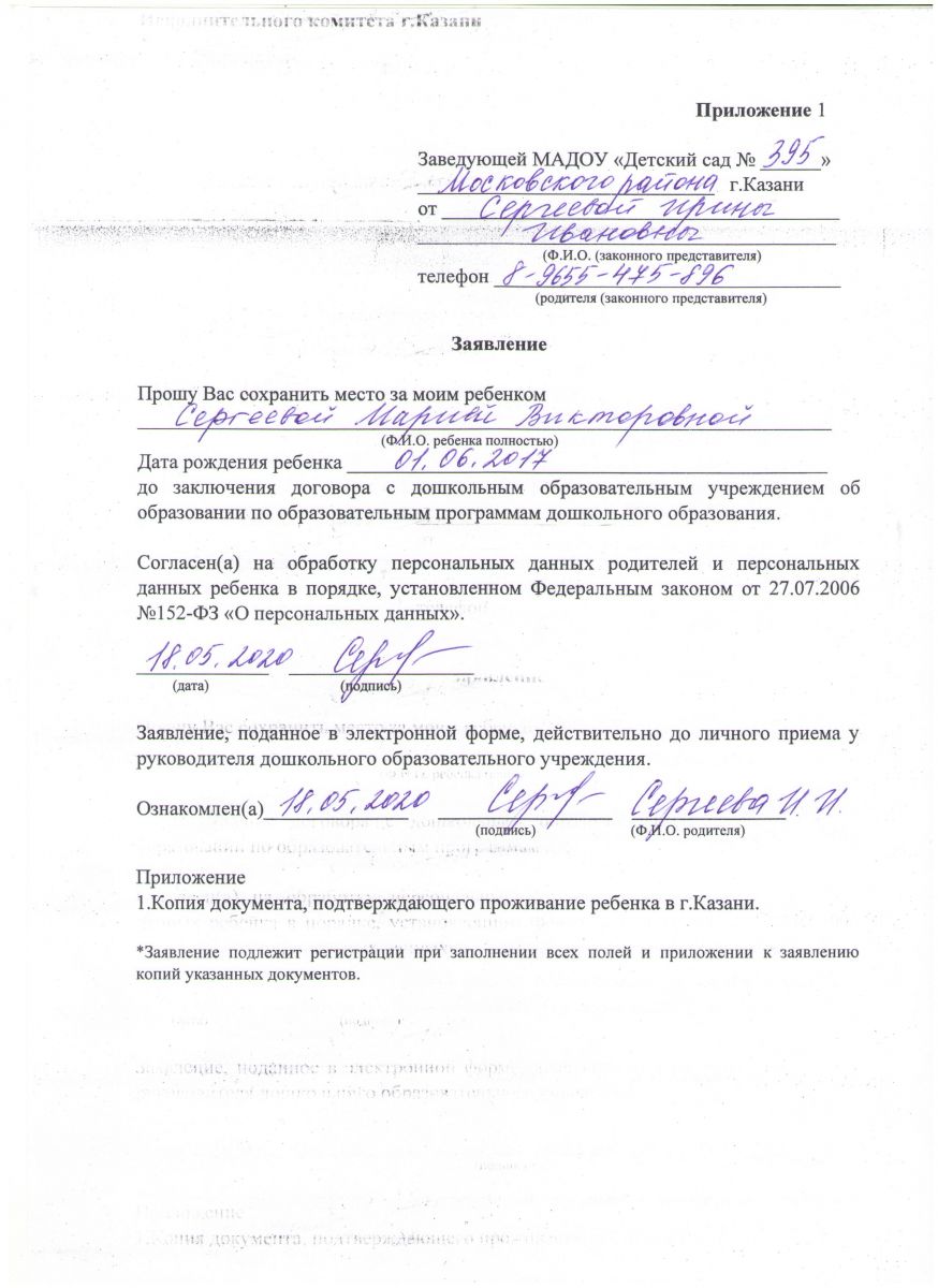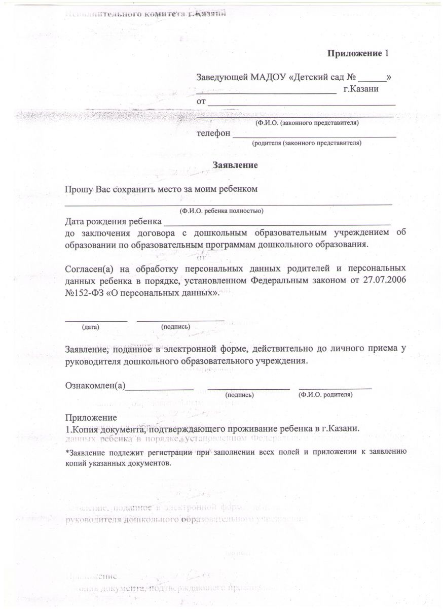 1. Просим вас скачать бланк заявления, для сохранения места за ребенком в детском саду