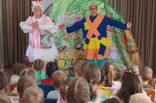 Театральный коллектив «Бала « показал нашим детям очень интересный и поучительный спектакль по мотивам китайских сказок « Золотой песок». В процессе спектакля герои общались со зрителями, задавали им вопросы, играли и шутили. В конце дети подарили громкие аплодисменты актёрам, а актёры поблагодарили ребят за внимание и участие!
