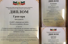 1) Диплом Гран-при в номинации «Лучший проект в области инклюзивной деятельности ДОУ»,