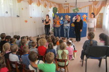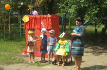 В эту пятницу наши ребятки просмотрели кукольный театр с участием воспитателей под названием "Вслед за солнышком". После просмотра дети узнали, что солнышко искать не нужно, а оно само придет к тому, кто рано встает и помогает взрослым.