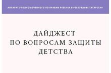 Аппаратом Уполномоченного по правам ребенка в Республике Татарстан подготовлен 15 выпуск сборника «Дайджест по вопросам защиты детства» в электронном формате. Дайджест.pdf. Материалы данного сборника адресуются родительской общественности, заинтересованным службам сферы защиты прав детей и семей с детьми, а также будут полезны работникам системы образования, здравохранения, культуры, спорта, молодежной политики и социальной защиты.
