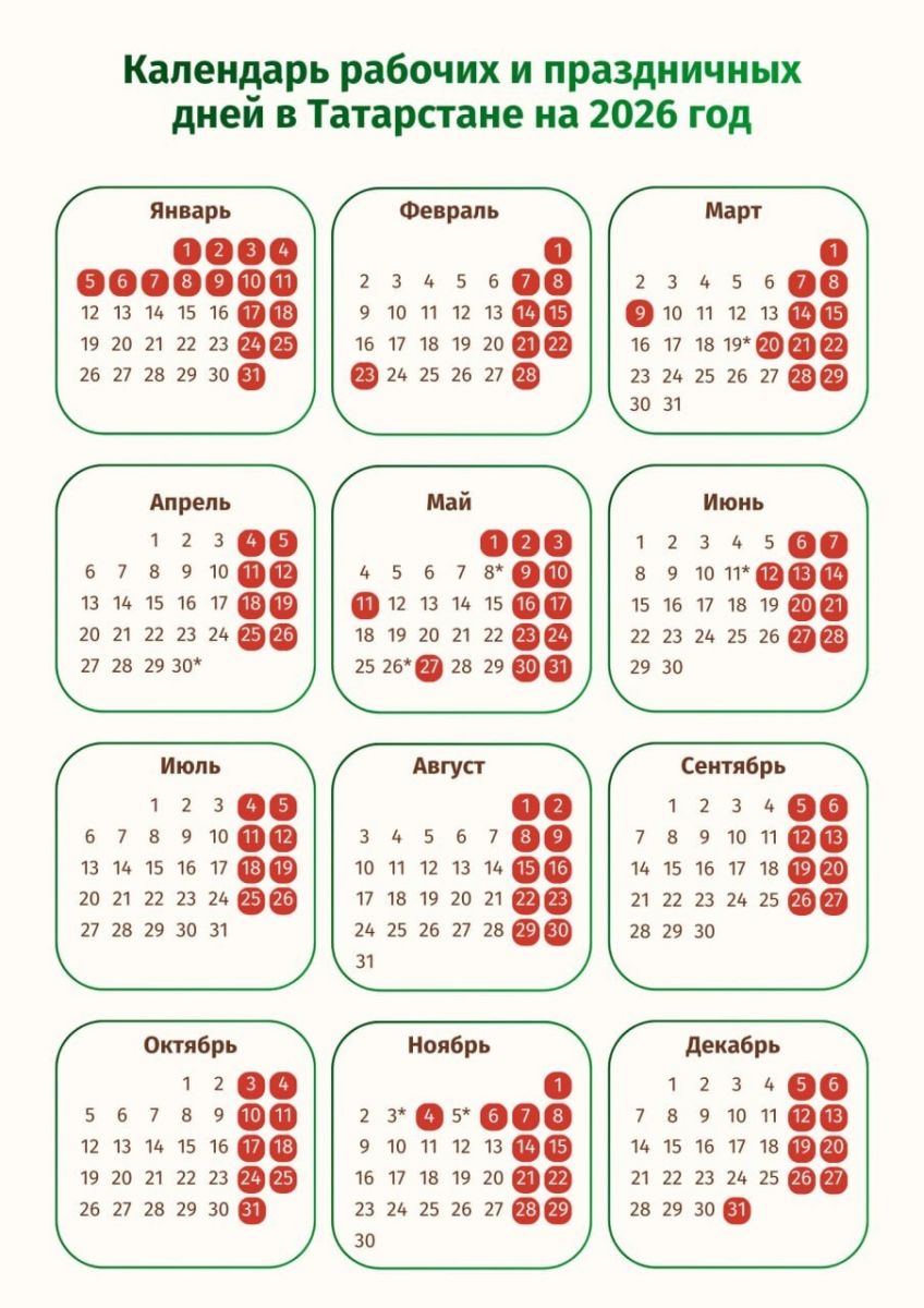 В помощь вам — календарь рабочих и праздничных дней в Республике Татарстан
