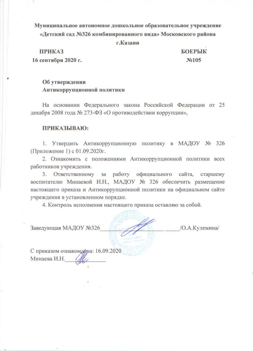 Приказ об утверждении антикоррупционной политики