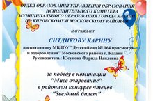 Администрация Кировского и Московского районов Исполнительного комитета города Казани выражает благодарность Фариде Миннулловне за большой личный вклад и плодотворный труд в деле воспитания и обучения детей дошкольного возраста!