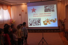 Сегодня в нашем детском саду прошло тематическое мероприятие, приуроченное к 70-летию Великой Победы. Дети узнали много интересного о жизни и подвигах детей, которые наравне со взрослыми приближали Победу.Видеофильм о детях-героях войны вызвал у ребят живой интерес. Ребята на обсуждении высказывали свое мнение и проявляли эмоциональную отзывчивость по отношению к героям фильма. Мальчики выразили свое желание стать защитником своей Родины. Дети поделились, что хотят стать похожими на героев войны.