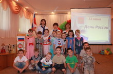 Сегодня в нашем саду прошло мероприятие, посвященное празднику "День России".Старший воспитатель совместно с педагогами подготовили для просмотра детей презентацию «Мы дети России». Цель показа – сформировать знания у детей о государственной символике, традициях, прививать чувства патриотизма и уважение к своей стране. , Дети наглядно познакомились с национальными символами России: гербом, флагом, значением его цветов, главными достопримечательностями столицы – Красная площадь, Кремль и т.д. Информационный материал презентации «Мы дети России» строился таким образом, что дети не только принимали активное участие в обсуждении, но имели возможность двигаться под музыку, петь, выполнять игровые задания.
