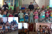 В детском саду была проведена встреча воспитанников с инспектором ГИБДД Московсковкого района. С детьми 2 младшей группы было проведено занятие "Кто главнее на дороге".