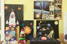 12 апрельдә илебез Космонавтика көнен билгеләп үтә. Бу истәлекле көн алдыннан безнең балалар бакчасында төрле чаралар уздырылды. Балалар космос, космонавтлар, кешенең космоска беренче очышы турында мәгълүмат белән таныштылар; мобиль планетарийда кунакта булдылар һәм «Йолдызлы күк» дип аталган балалар иҗаты күргәзмәсендә катнаштылар - галәм серләре белән таныштылар.