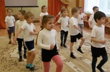 Утренняя зарядка для детей проводится под музыку под руководством инструктора по физ. культуре Гизатуллиной А.Р. и служит залогом хорошего настроения на целый день. Музыка дисциплинирует ребят, повышает их внимание и работоспособность. Мы заботимся о здоровье детей всегда и везде: на любом занятии, при проведении любого режимного момента.
