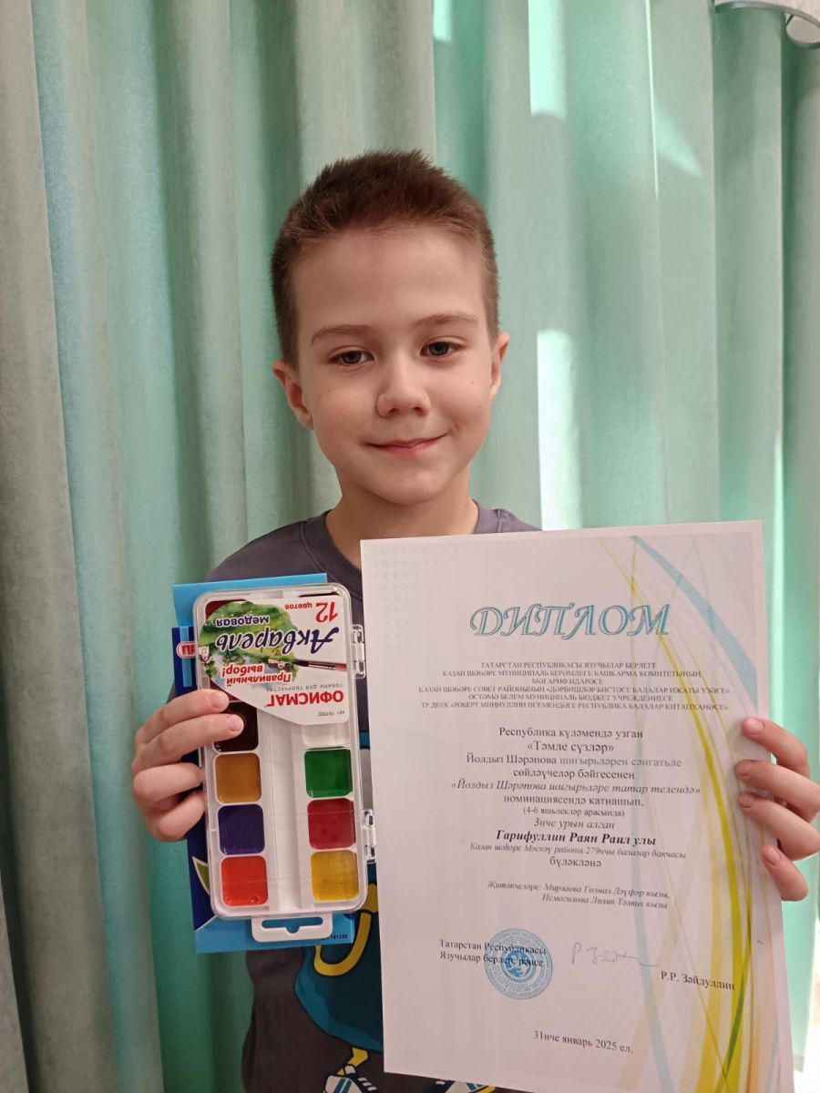 Поздравляем Гарифуллина Раяна, воспитанника подготовительной группы №9, 3 место в в республианском конкурсе "Тәмле сүзләр".
