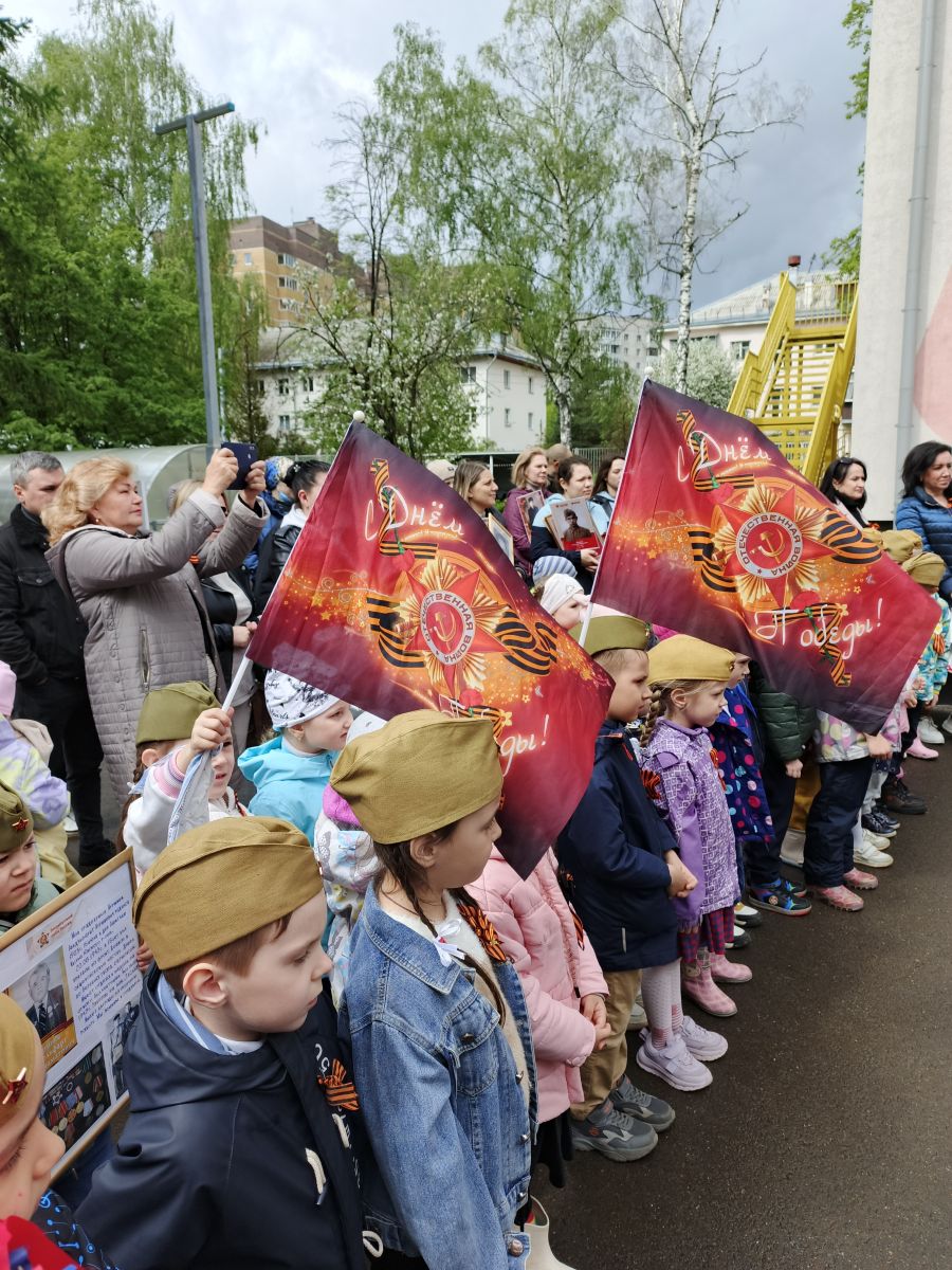 Сегодня в нашем ДОУ прошел праздничный концерт. Дети исполнили песни и танцы на военную тематику. В завершении было шествие "Бесмертный полк".