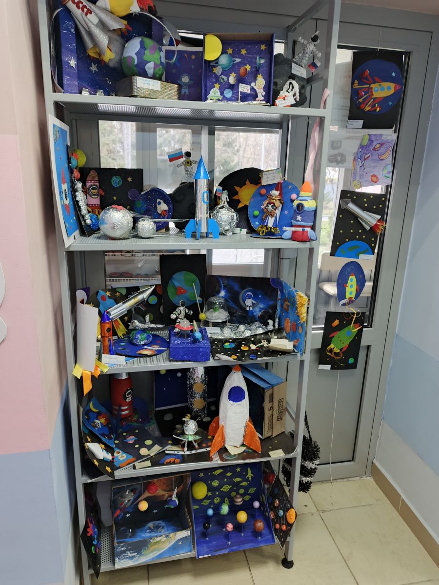 Выставка творческих работ ко Дню космонавтики.