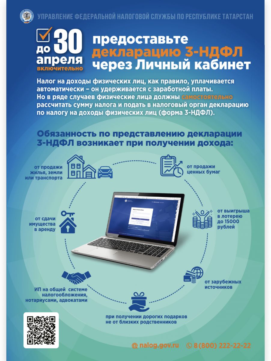 «До 30 апреля предоставьте декларацию 3-НДФЛ через Личный кабинет»