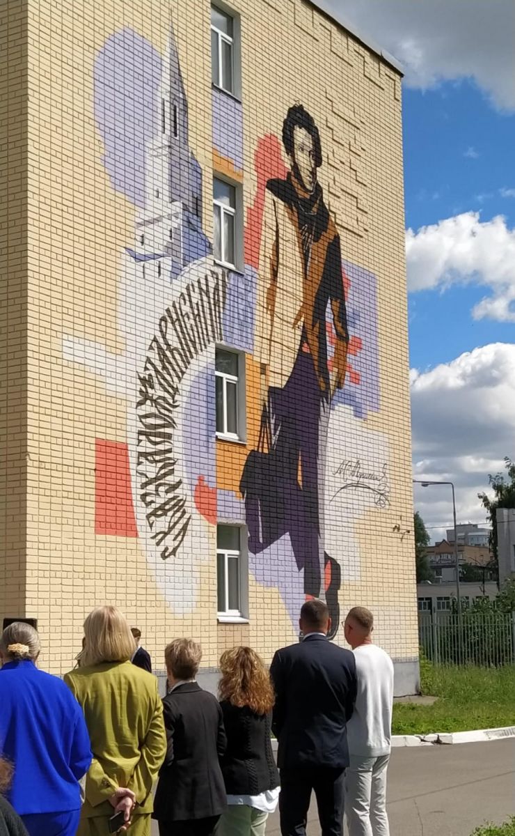 Опубликовано: 26.06.2024Сегодня в гимназии №20 «Гармония» прошло торжественное открытие мурала, посвященного русскому поэту — Александру Пушкину. Площадь рисунка составляет 70 кв.м., высота — четыре этажа.