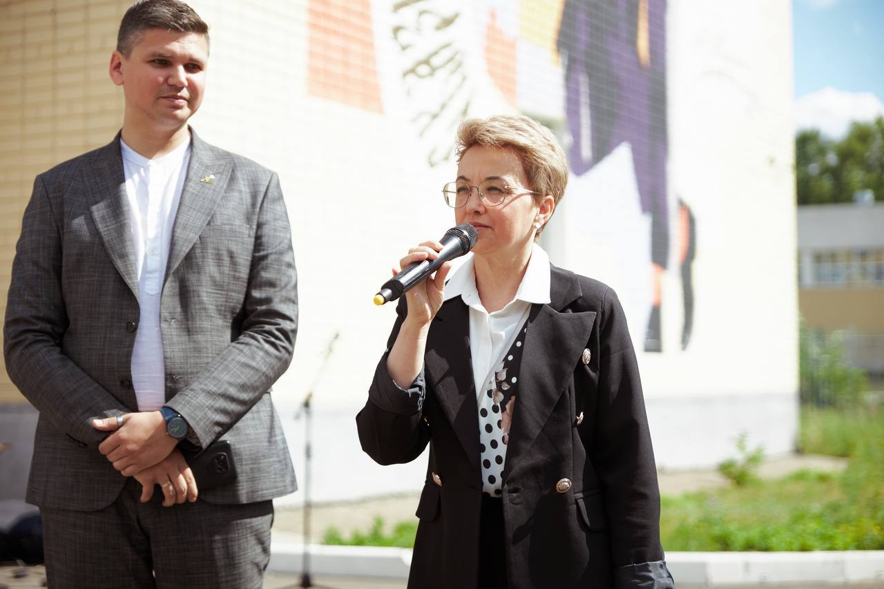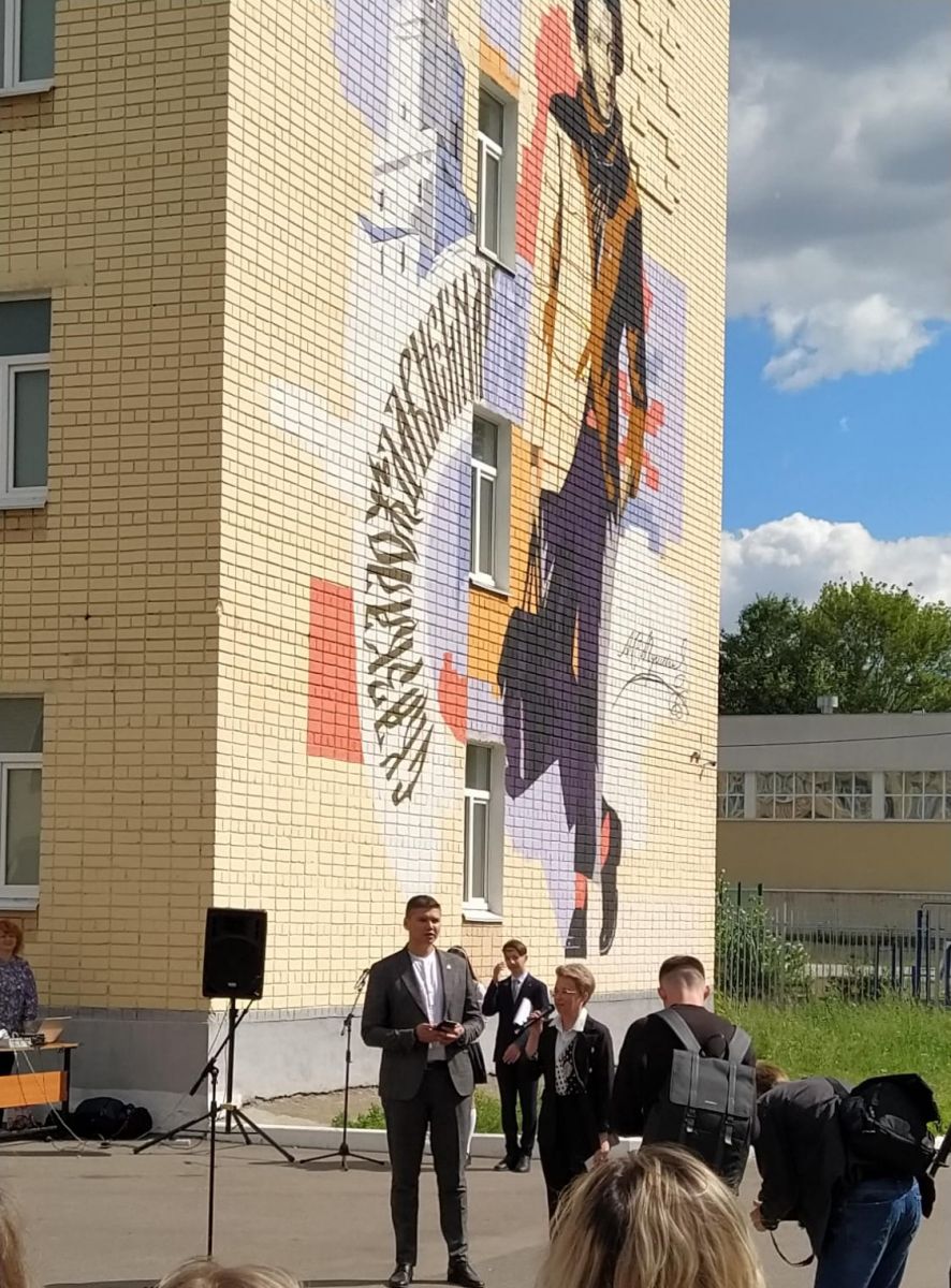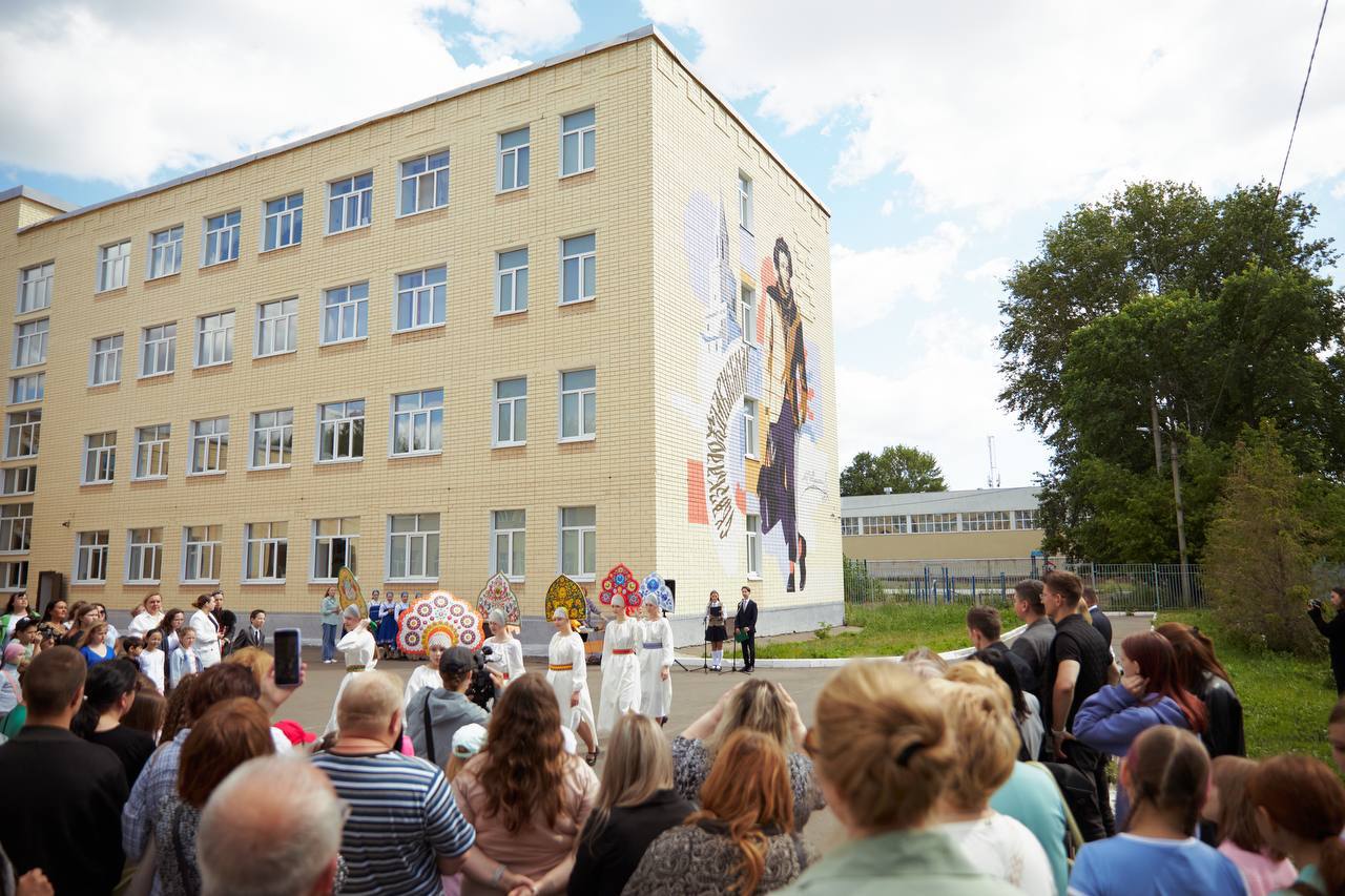 Среди гостей мероприятия — учащиеся, их родители, педагоги, а также представители организаций, причастных к этой инициативе. Напомним, к работе над проектом были привлечены как ученики, с которыми обсуждали, каким должно быть изображение, так и выпускники школы, профессионально занимающиеся дизайном.