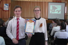 Диплом победителя школьного конкурса патриотической песни на этот раз достался ученикам 10А класса, которые представили всем собравшимся современную песню «Здравствуй, юность в сапогах» в оригинальном гитарном исполнении.