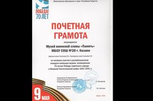 Поздравляем поисковую группу школьного Музея воинской славы «Память» вместе с его бессменным творческим руководителем Салимовой З.М. с вручением Почётной грамоты МОиН РТ и региональной общественной организации ветеранов РТ за активное участие в республиканском конкурсе школьных музеев, посвящённом 70-летию Победы советского народа в Великой Отечественной войне 1941 – 1945 г.г.