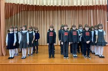"Воспевая героев"- традиционный фестиваль патриотической песни прошел вчера для учащихся 1-4 и 8-11 классов. А начался он, конечно же, с "Марша Будённого"