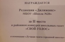Поздравляем Хазиеву Г. Х. и редакцию школьной газеты "Дилижанс" с почетным 2 местом в районном конкурсе школьных газет. Желаем успехов на республиканском этапе конкурса!
