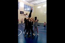 В школе даже в зимние каникулы ребята активно занимаются спортом: сборная юниоров по черлидингу на тренировке