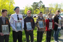 В канун 70-летия Победы советского народа в Великой Отечественной войне 1941 – 1945 г.г. для участия в республиканской историко-патриотической акции «Родные лица Победы» нашей школой был изготовлен баннер с портретами участников войны нашего микрорайона, описанием их боевого пути и пожеланиями от правнуков защитников Отечества. Таким образом, мы отдаём дань уважения ветеранам Великой Отечественной войны, сохранившим мирное небо над нашими головами.