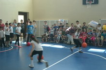 В завершении праздника «День открытых дверей» школы №20 воспитанники детских садов получили возможность побывать в только что отремонтированном спортивном зале и увидеть увлекательные соревнования «Весёлые старты» под руководством опытного педагога – наставника, учителя физкультуры Колоярцева А.А, в которых приняли участие выпускники начальной школы.