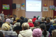 В актовом зале состоялось родительское собрание "Семья и школа - территория безопасности". Перед родителями выступила псохолог ШПЦ "Ресурс" Сайдакова Е.В.