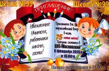 75 лет школе №99 06.02.2015 6 февраля в ЦКС "Московский" состоялся праздник, посвященный 75-летнему юбилею нашей школы. На торжественном мероприятии присутствовали представители МОиН РТ, районного Отдела образования , ветераны педагогического труда, учителя , учащиеся , выпускники школы.