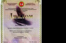 В загородном лагере «Байтик» с 10 по 16 мая 2013 года состоялся третий заключительный этап XVII республиканского конкурса «Юный программист» среди учащихся общеобразовательных школ республики и обучающихся учреждений среднего профессионального образования. Среди участников конкурса была и ученица нашей школы Чихирева Дарья (11К кл.). Мы поздравляем ее с победой в номинации "Компьютерный дизайн"