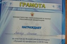 Поздравляем Яхину Лилию, занявшую 4 место в конкурсе "Лучший по профессии" 19.10.2016