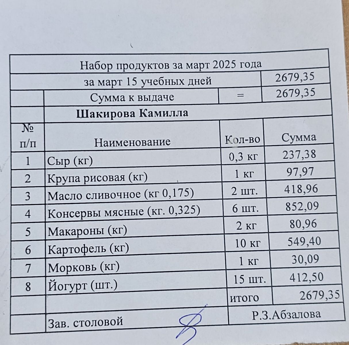 Выдача продуктов, выдаваемых обучающимся индивидуального обучения на дому - март 2025