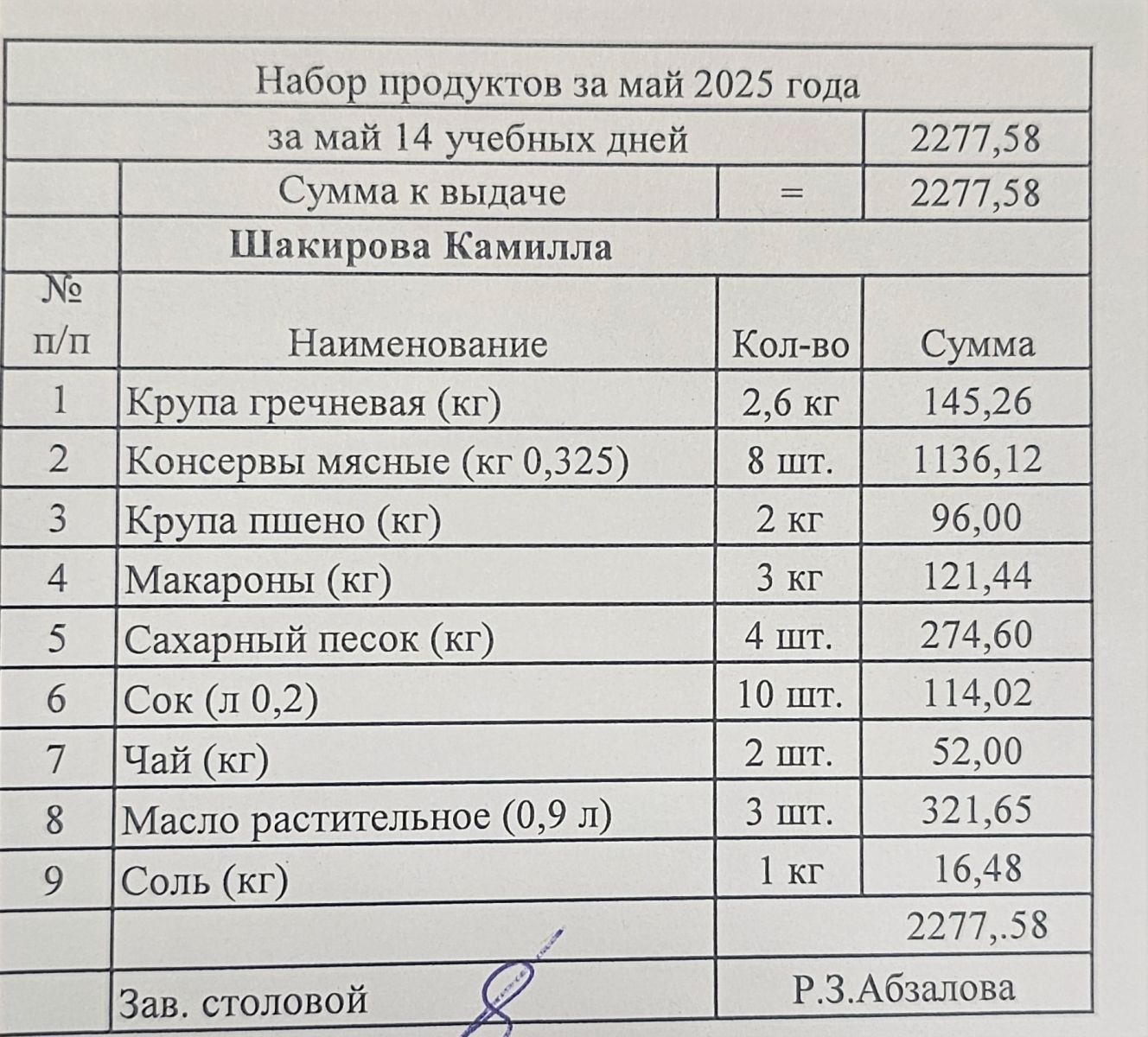 Выдача продуктов, выдаваемых обучающимся индивидуального обучения на дому - май 2025