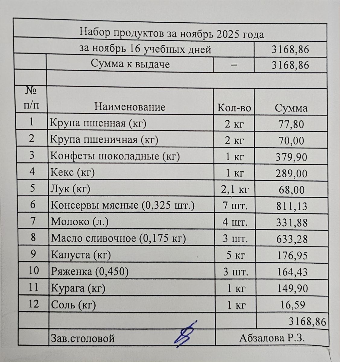 Продуктовый набор, выдаваемый обучающимся индивидуально на дому - ноябрь 2025