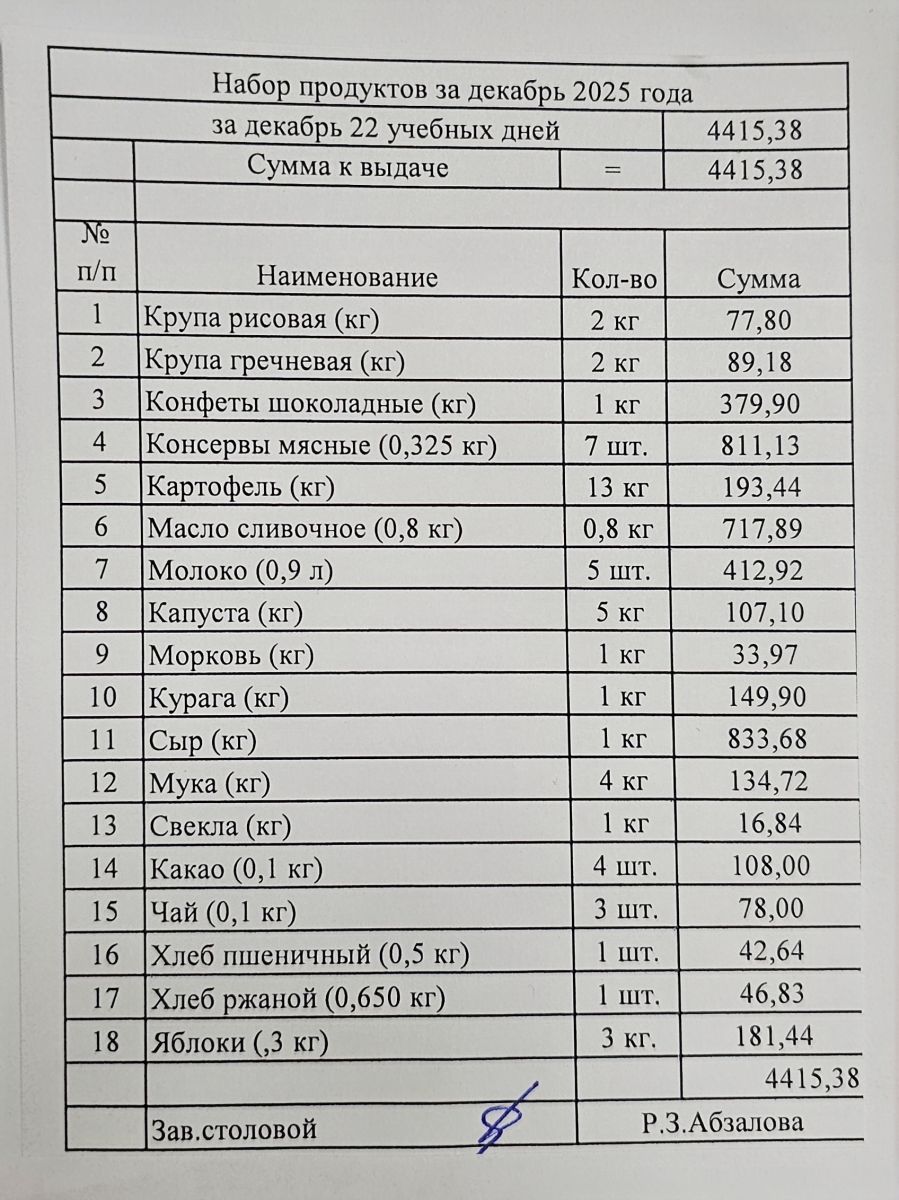 Продуктовый набор, выдаваемый обучающимся индивидуально на дому - декабрь 2025