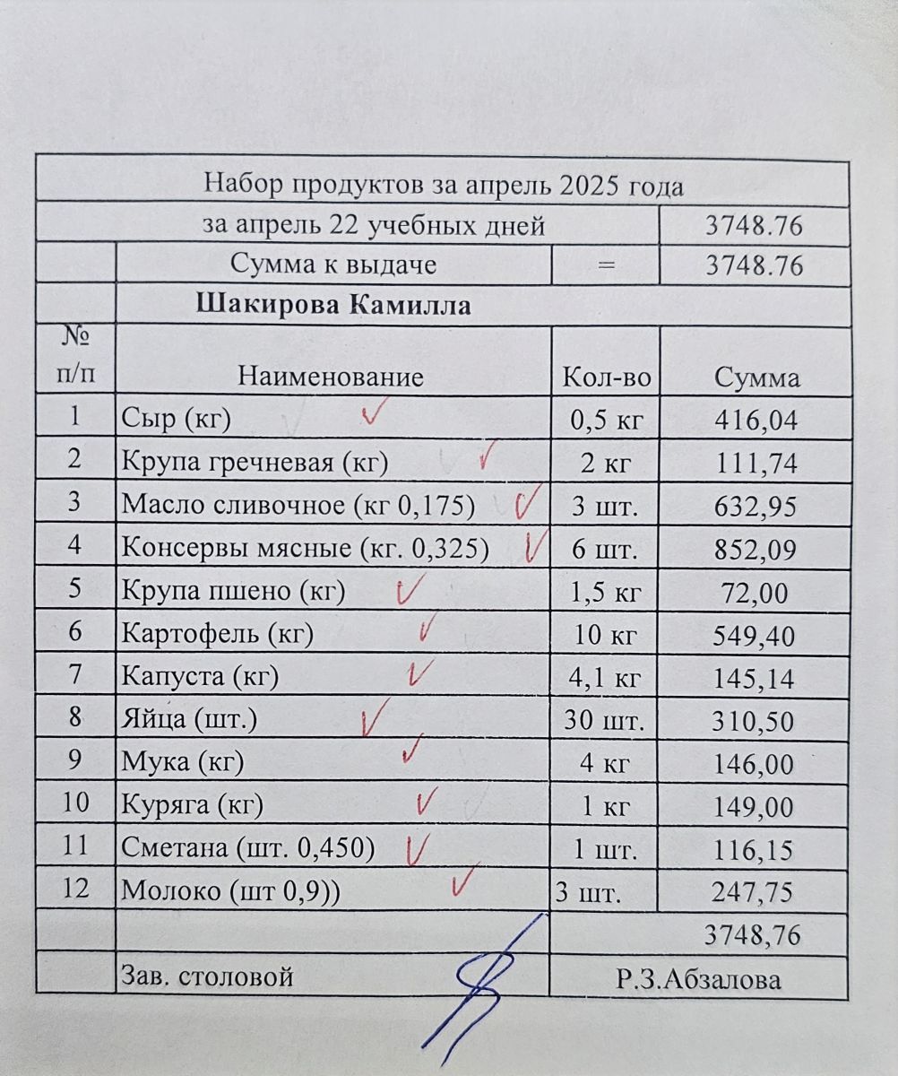 Выдача продуктов, выдаваемых обучающимся индивидуального обучения на дому - апрель 2025