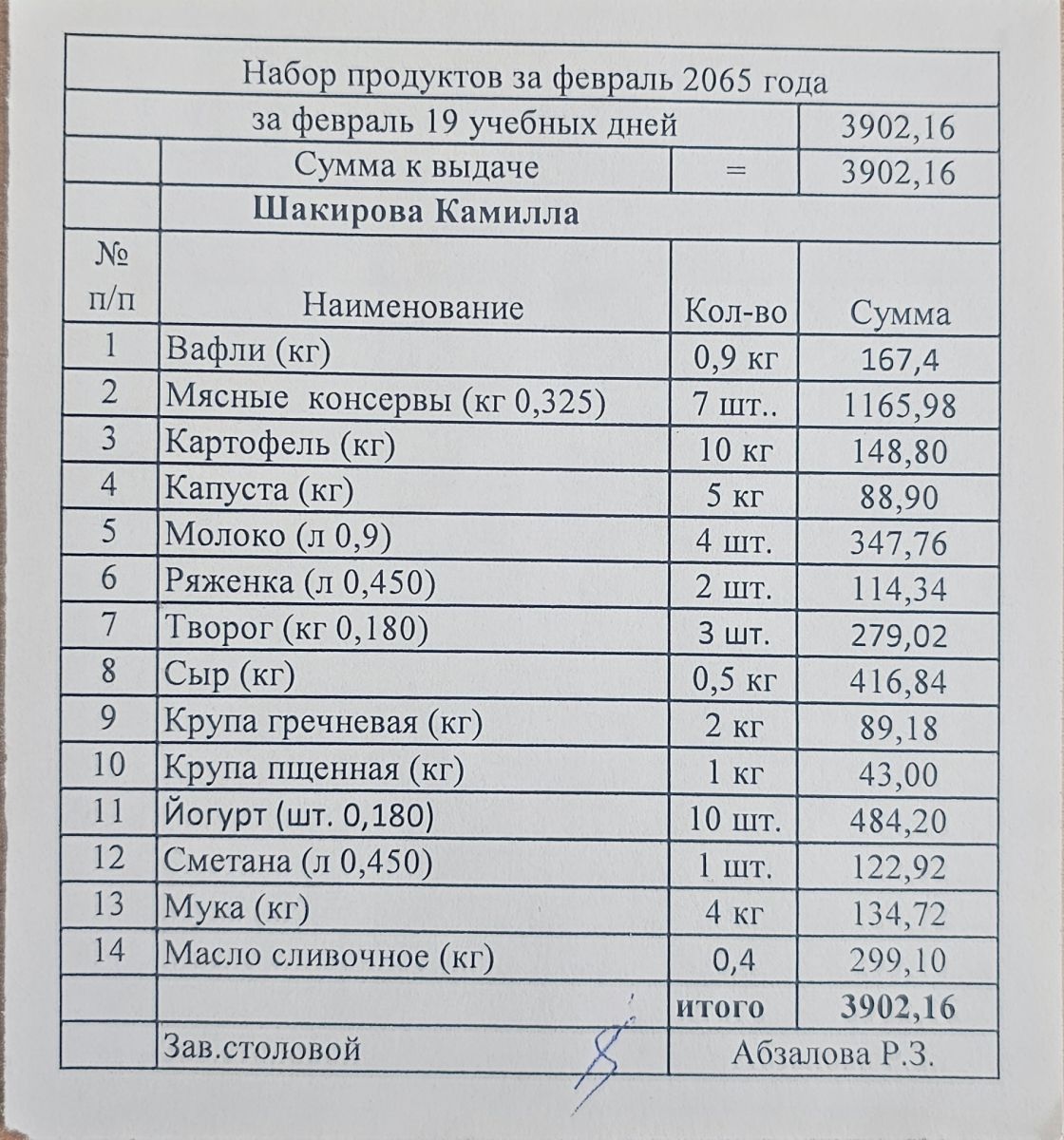 Продуктовый набор, выдаваемый обучающимся индивидуально на дому - февраль 2023