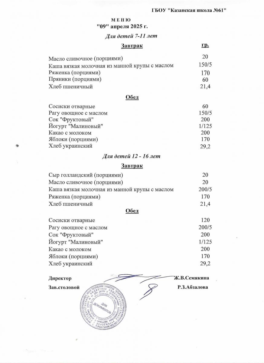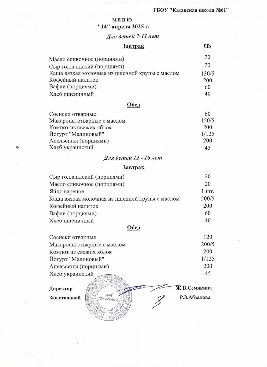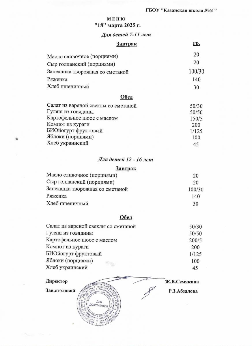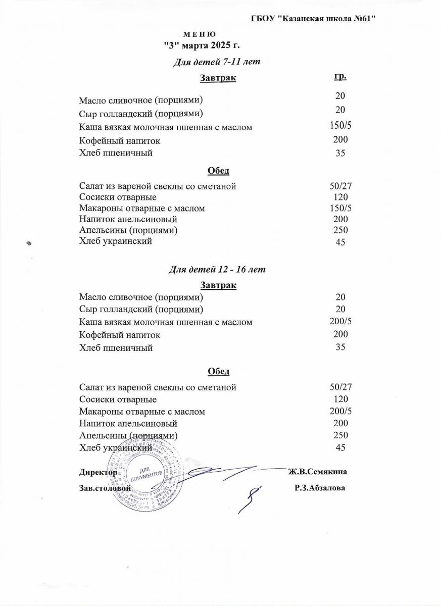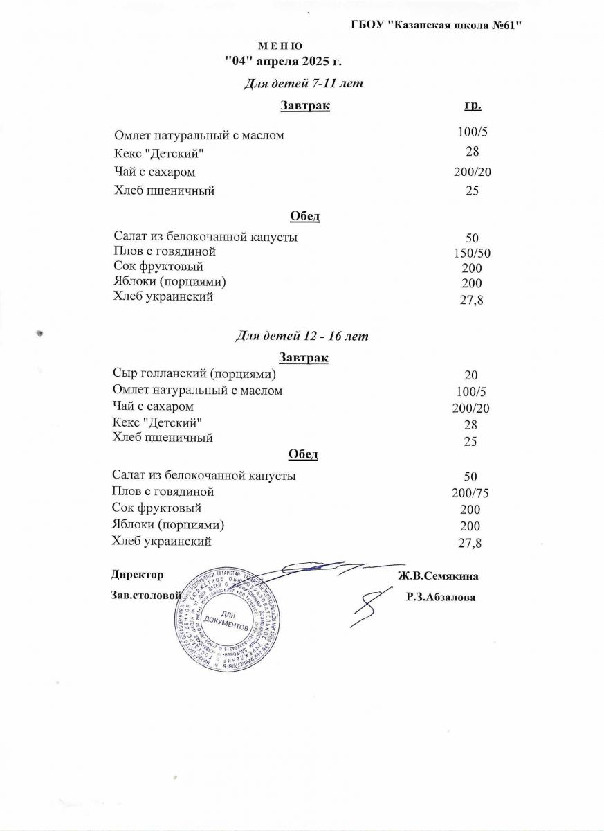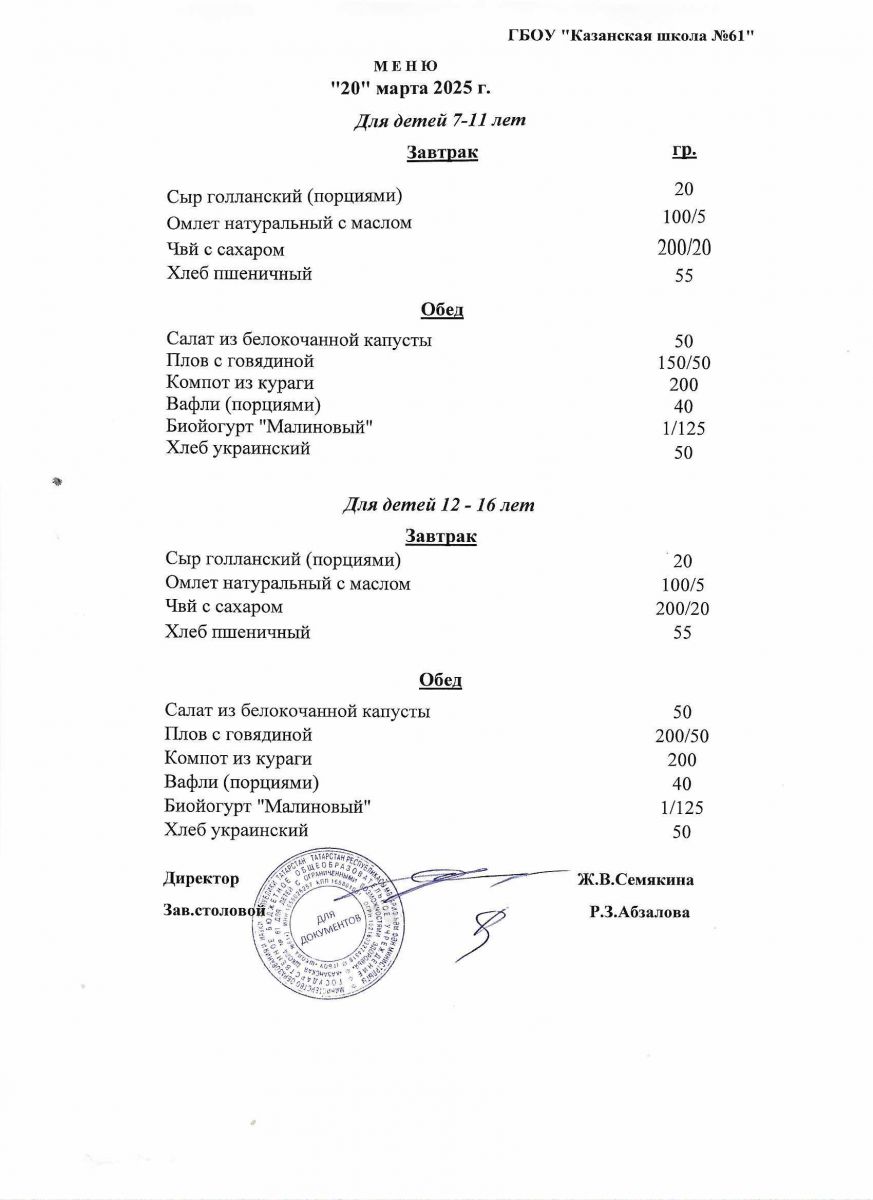 Меню на период с 31 марта по 2 апреля 2021 г.
