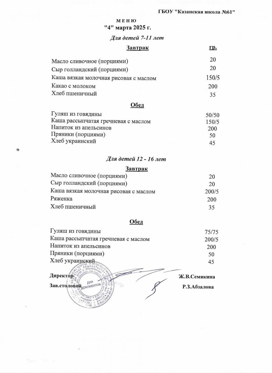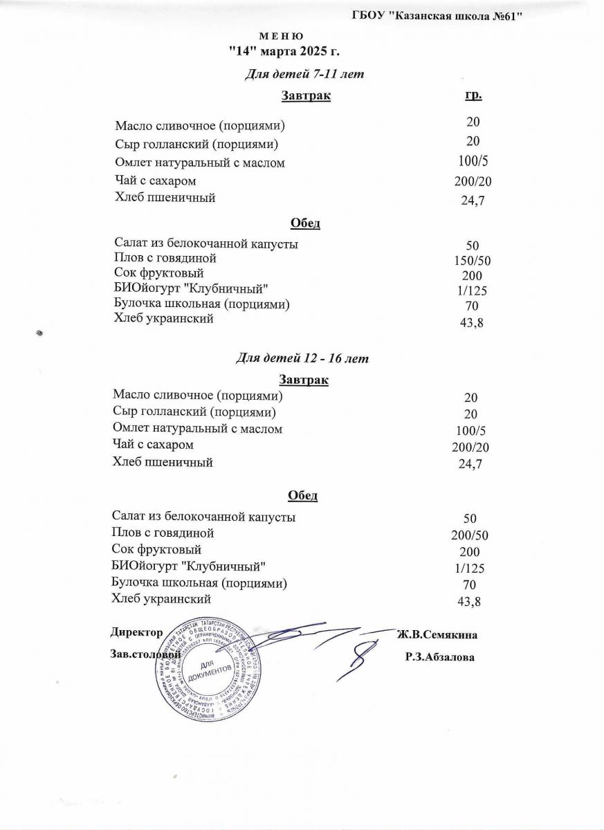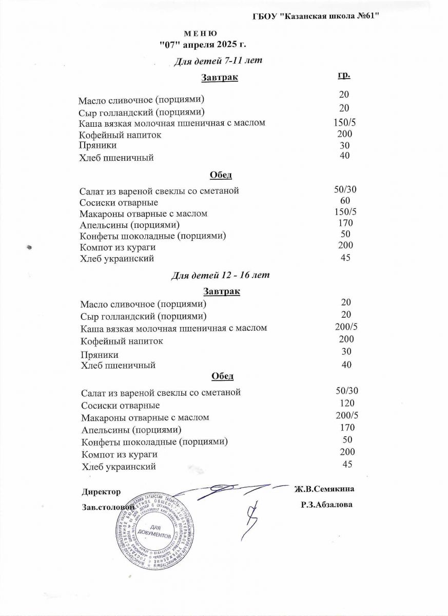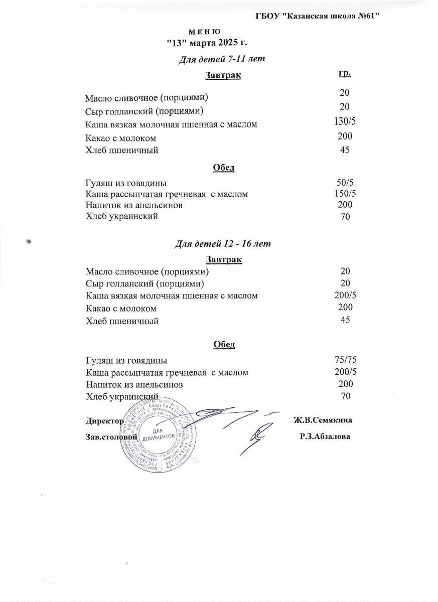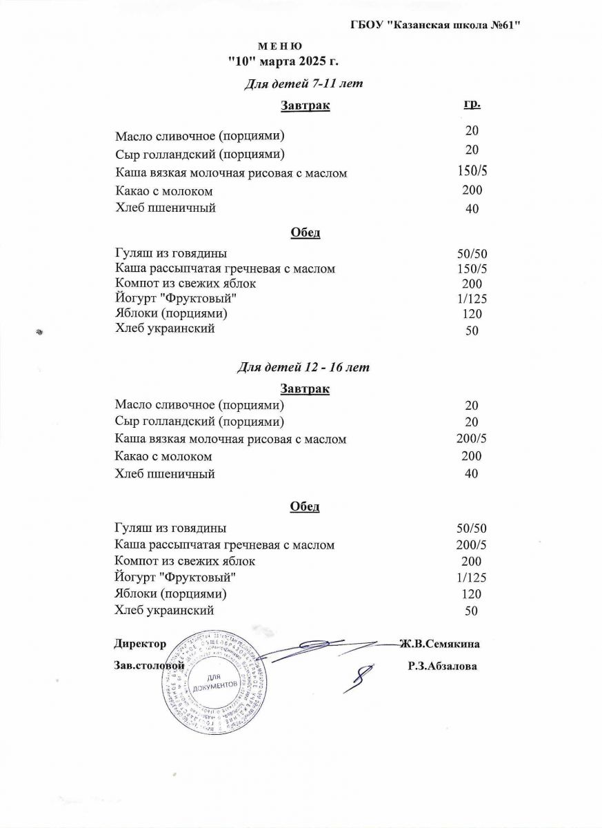 Меню на период с 31 марта по 2 апреля 2021 г.