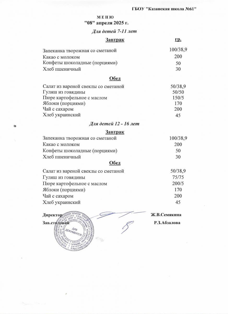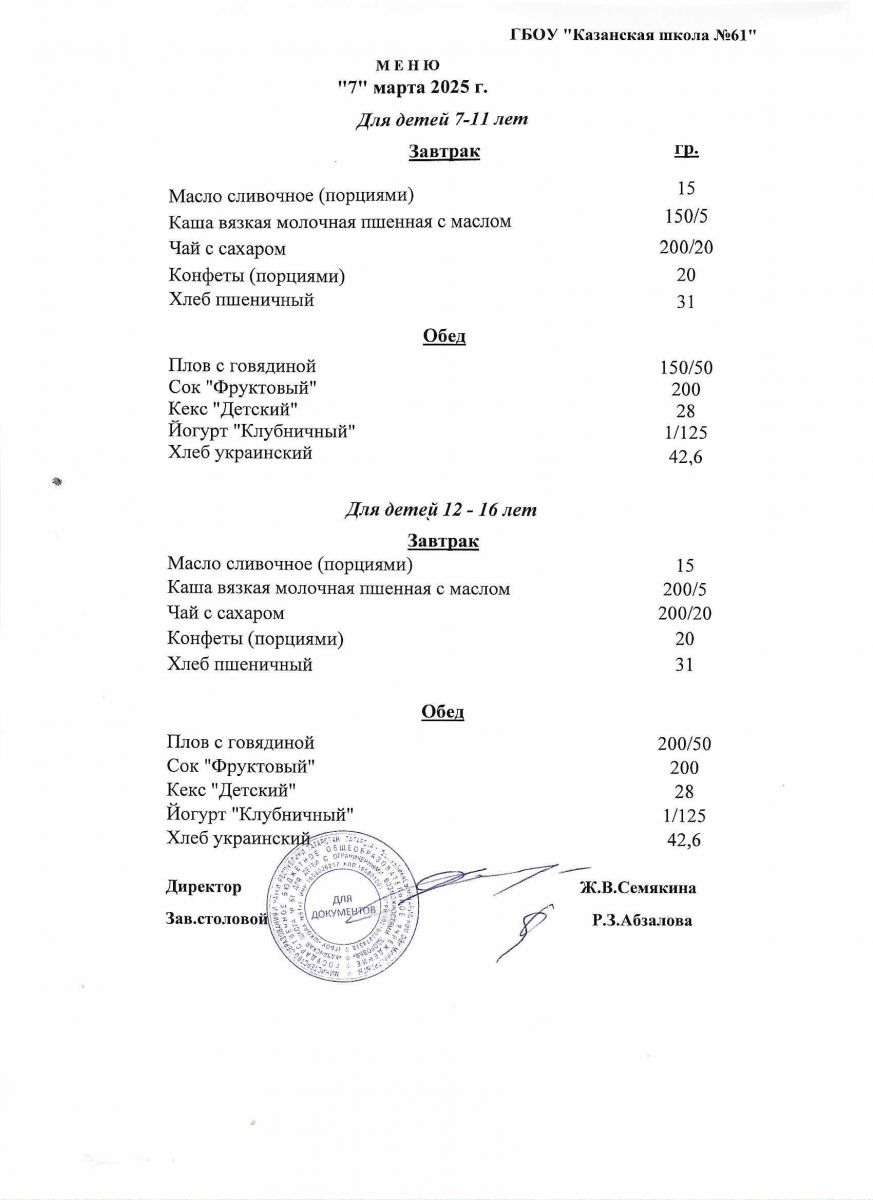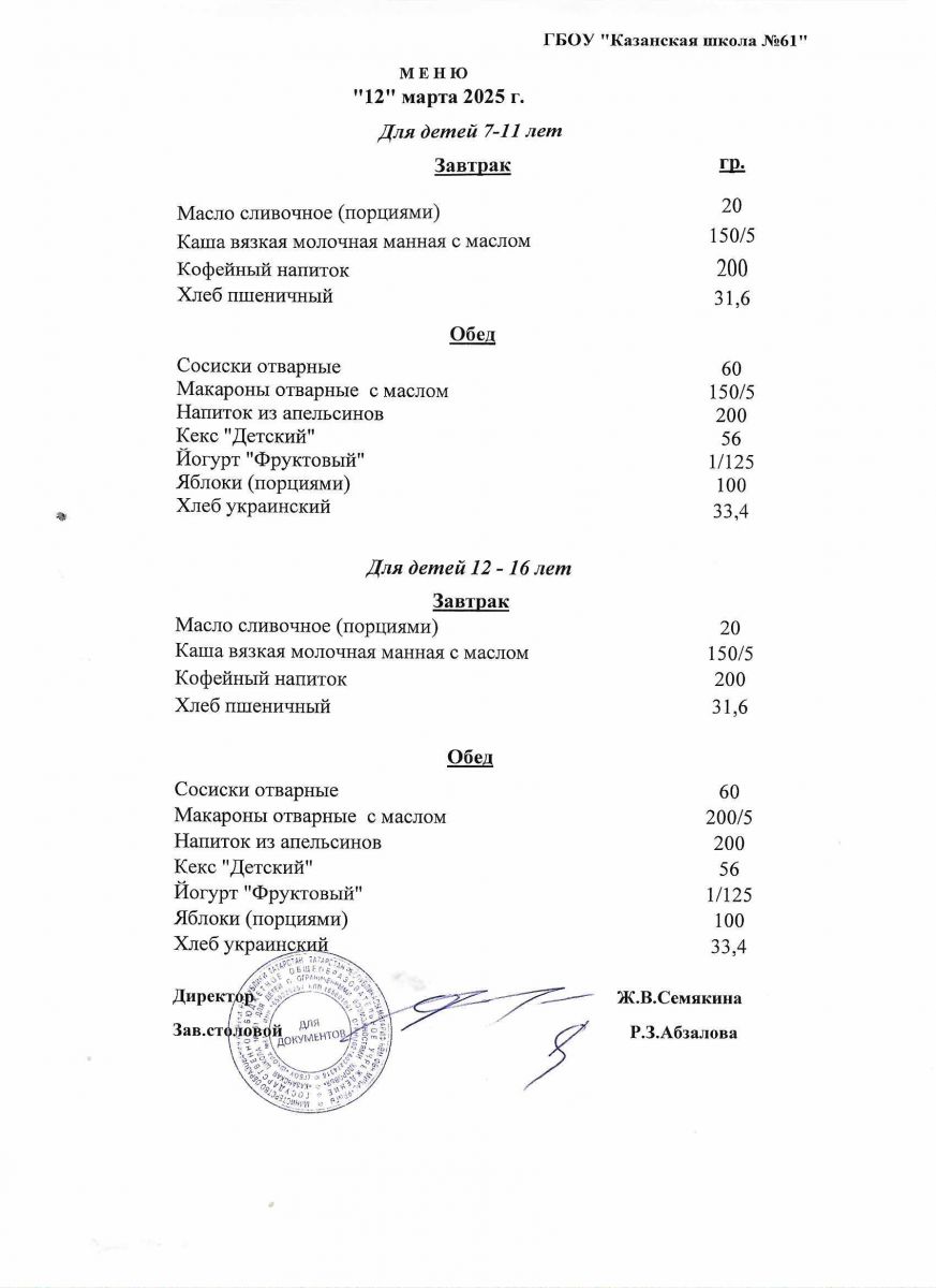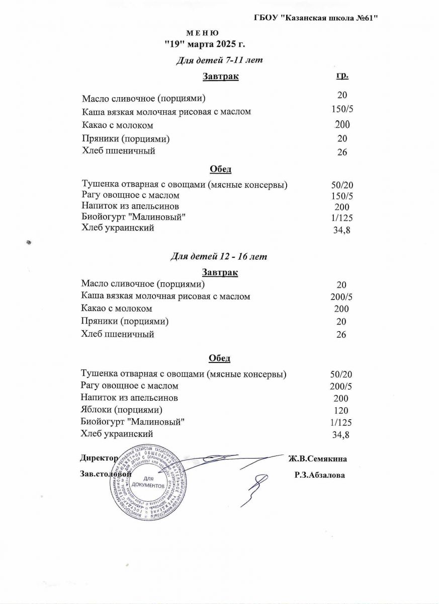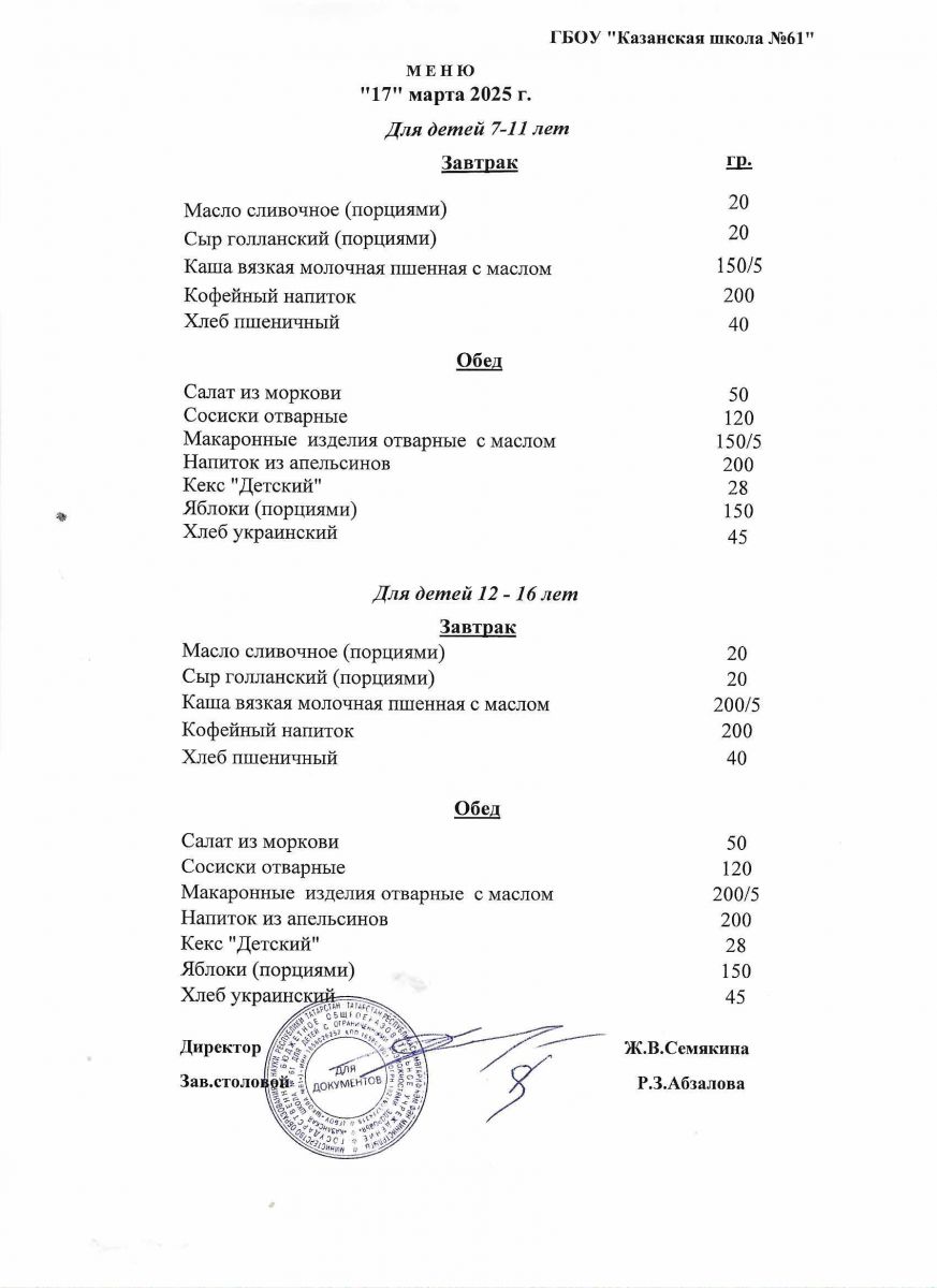 Меню на период с 31 марта по 2 апреля 2021 г.