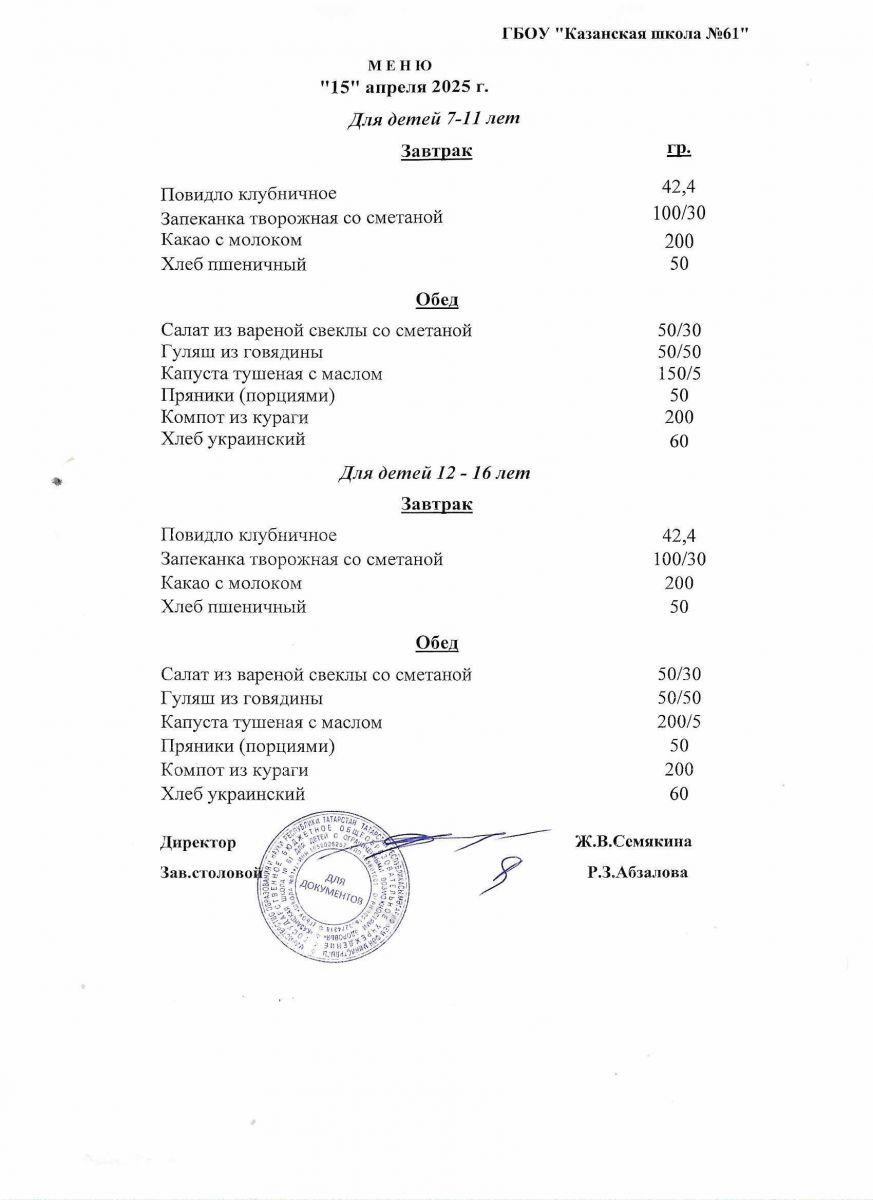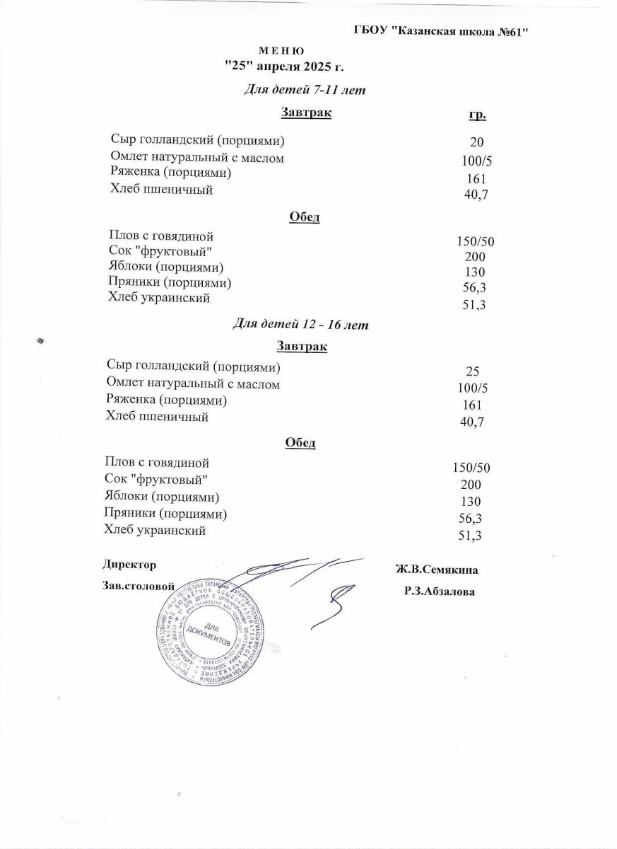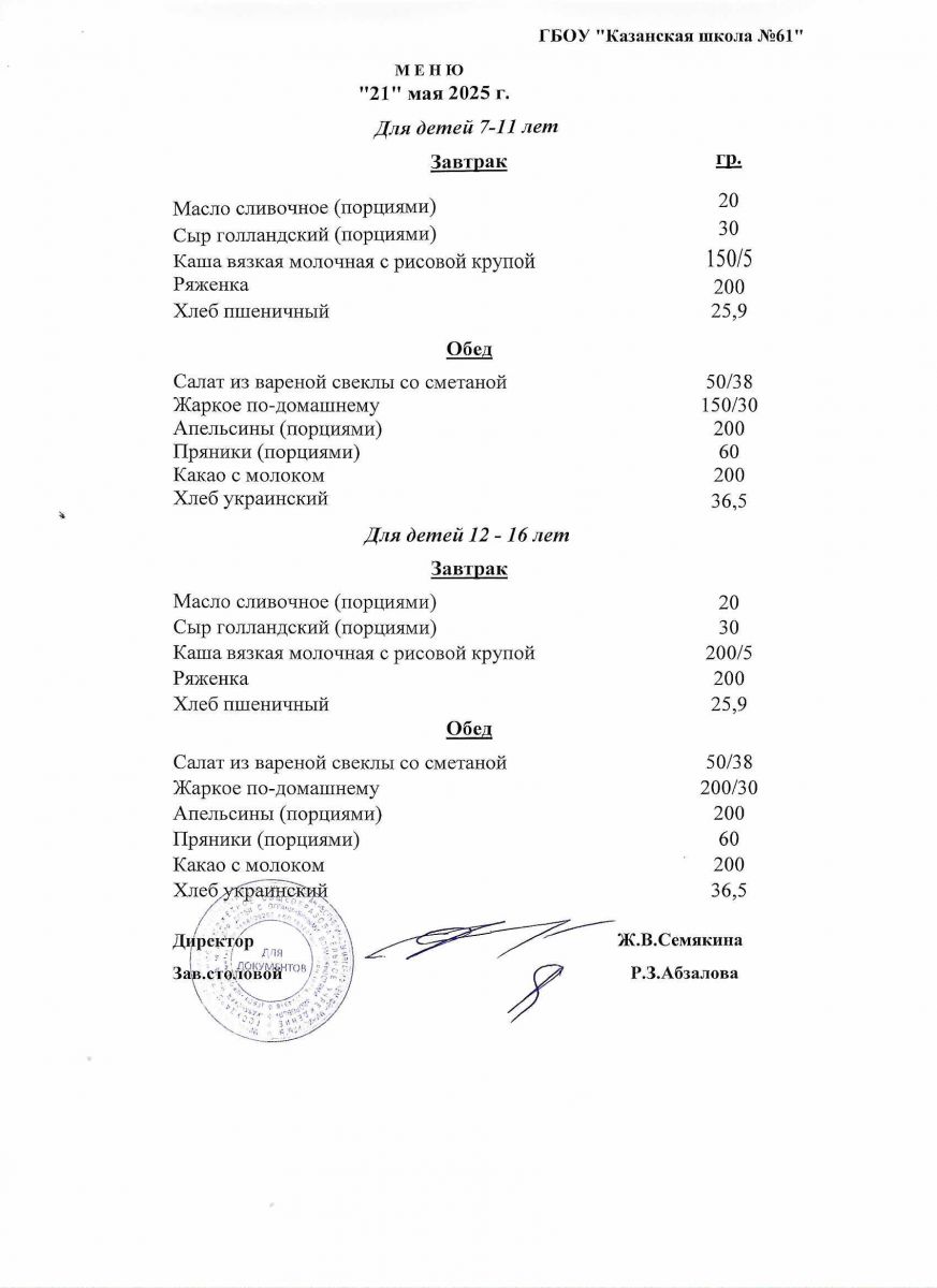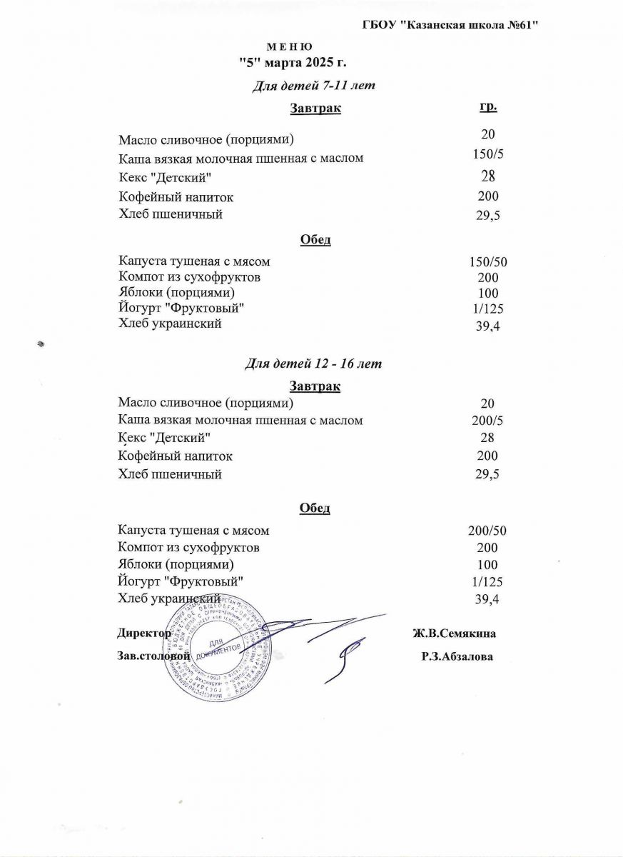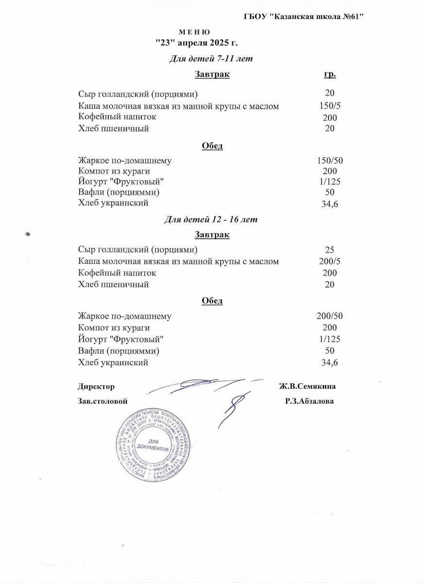Меню на период с 31 марта по 2 апреля 2021 г.