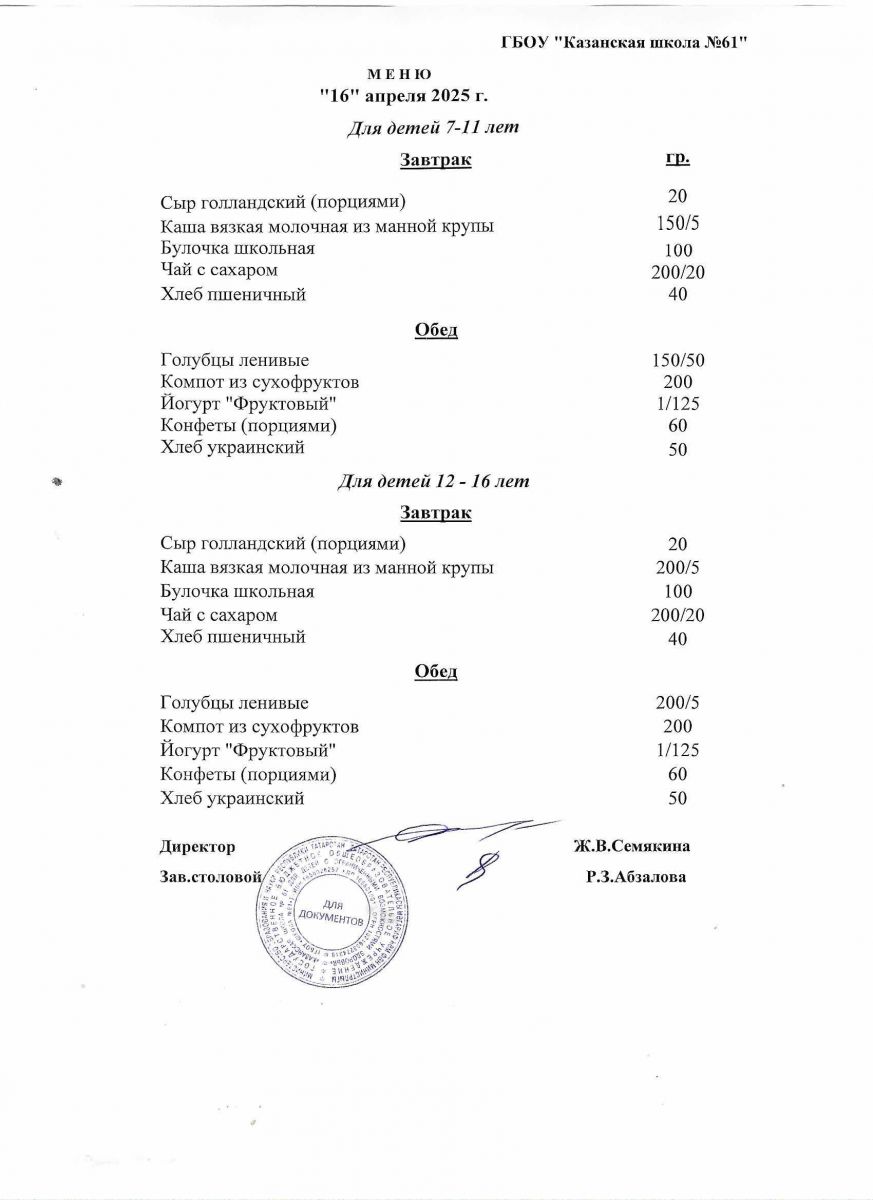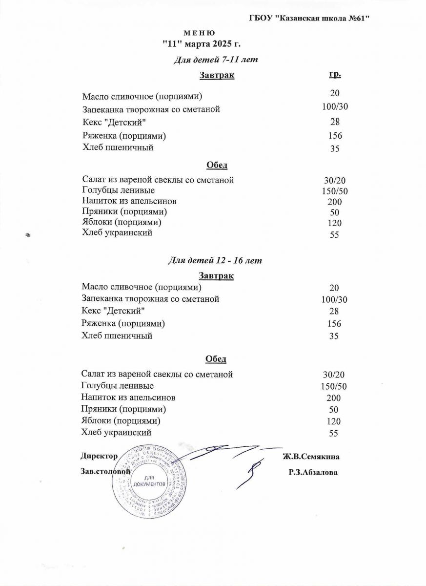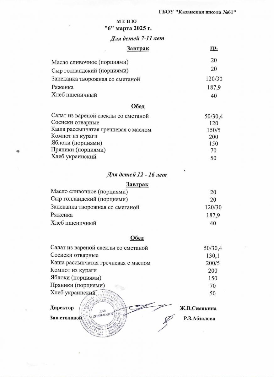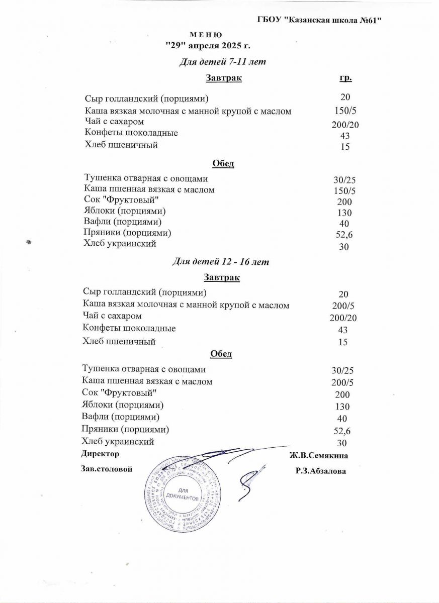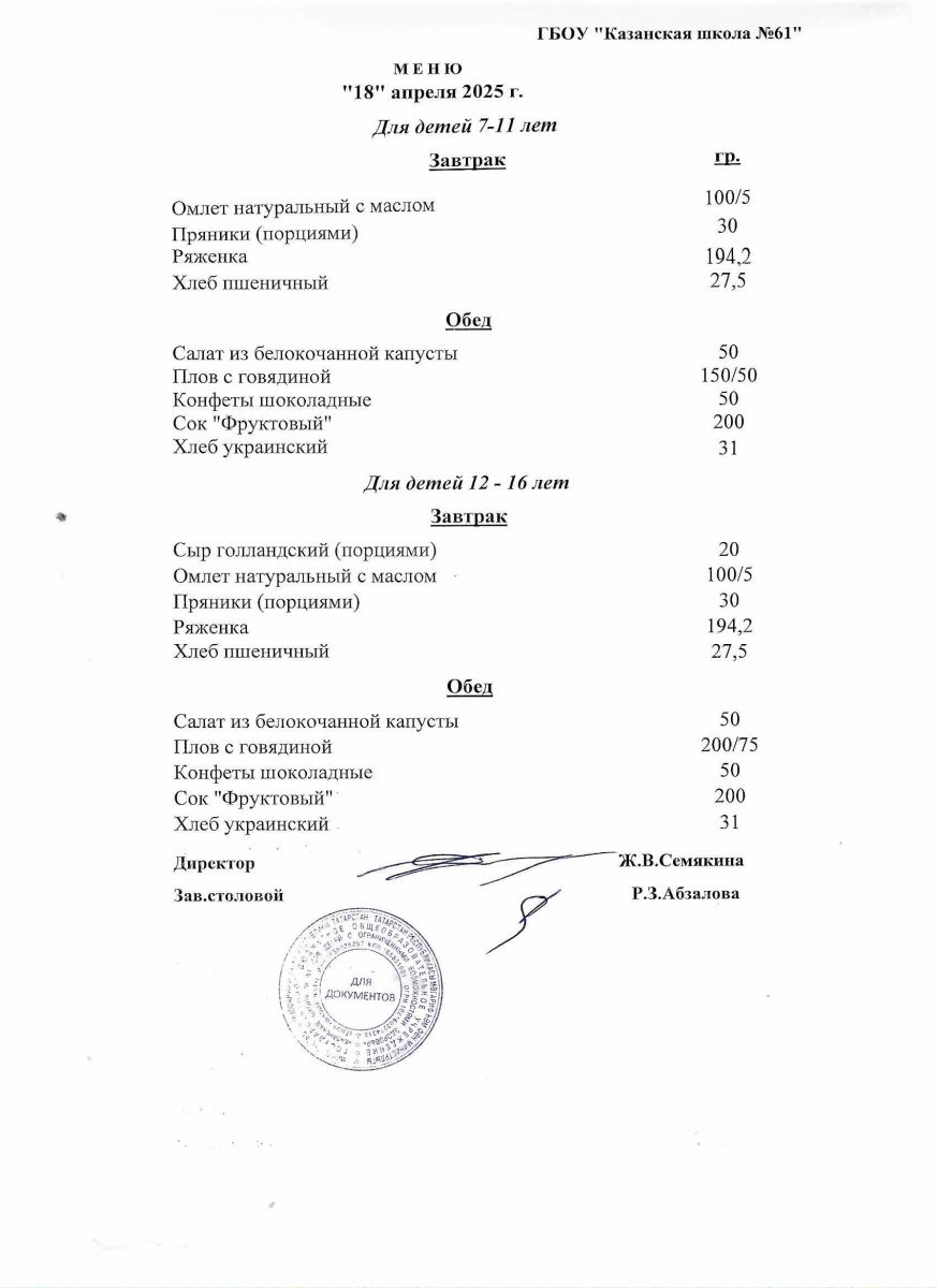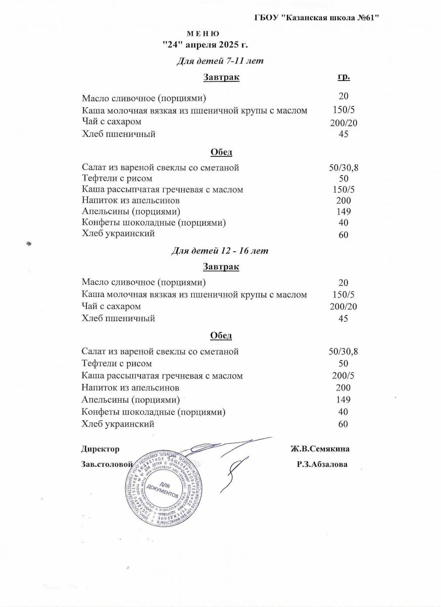 Меню на период с 31 марта по 2 апреля 2021 г.